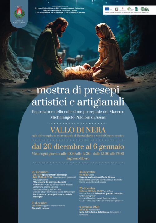 Esposizione della collezione presepiale del Maestro Michelangelo Pulcioni di Assisi VALLO DI NERA sale del complesso convenutale di Santa Maria e vie del Centro Storico …